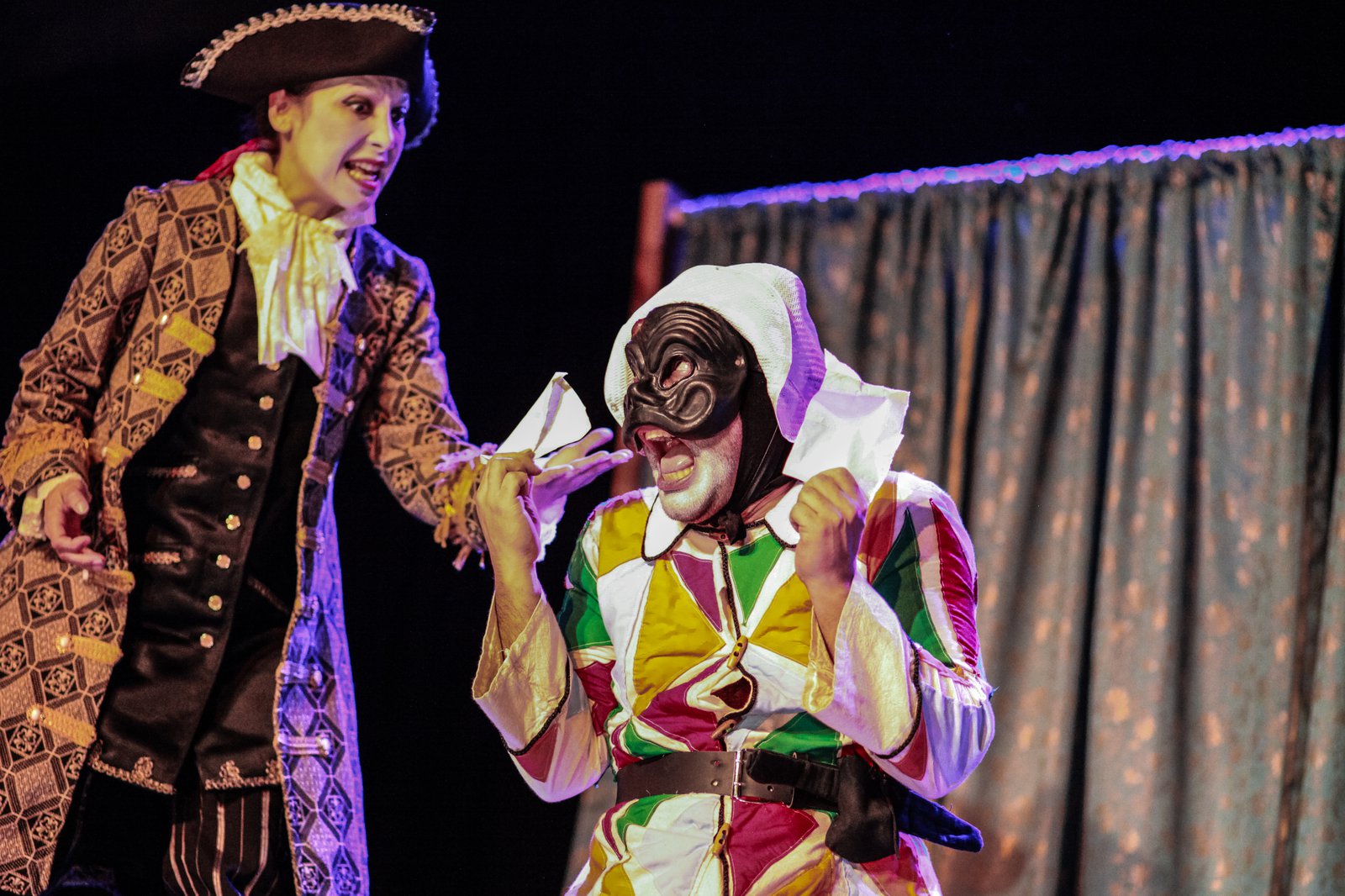 Arlequino, servidor de dos patrones. Un clásico de la Comedia del Arte, escrito por Carlo Goldoni en Creando una fiesta popular, invita a ver cómo una compañía de teatro, apasionadamente italiana, pone en escena este clásico mostrando lo que ocurre tras bambalinas. En un tablado que recrea un escenario de plaza, se entremezcla la comedia de enredos que habla del amor, la astucia y la alegría de vivir, con las inesperadas situaciones que enfrentan los actores para desarrollar el montaje. Esta obra, con funciones pagadas del 5 al 9 de enero, forma parte del ciclo de montajes presentados en la Aldea del Encuentro en el marco del Festival 2022.