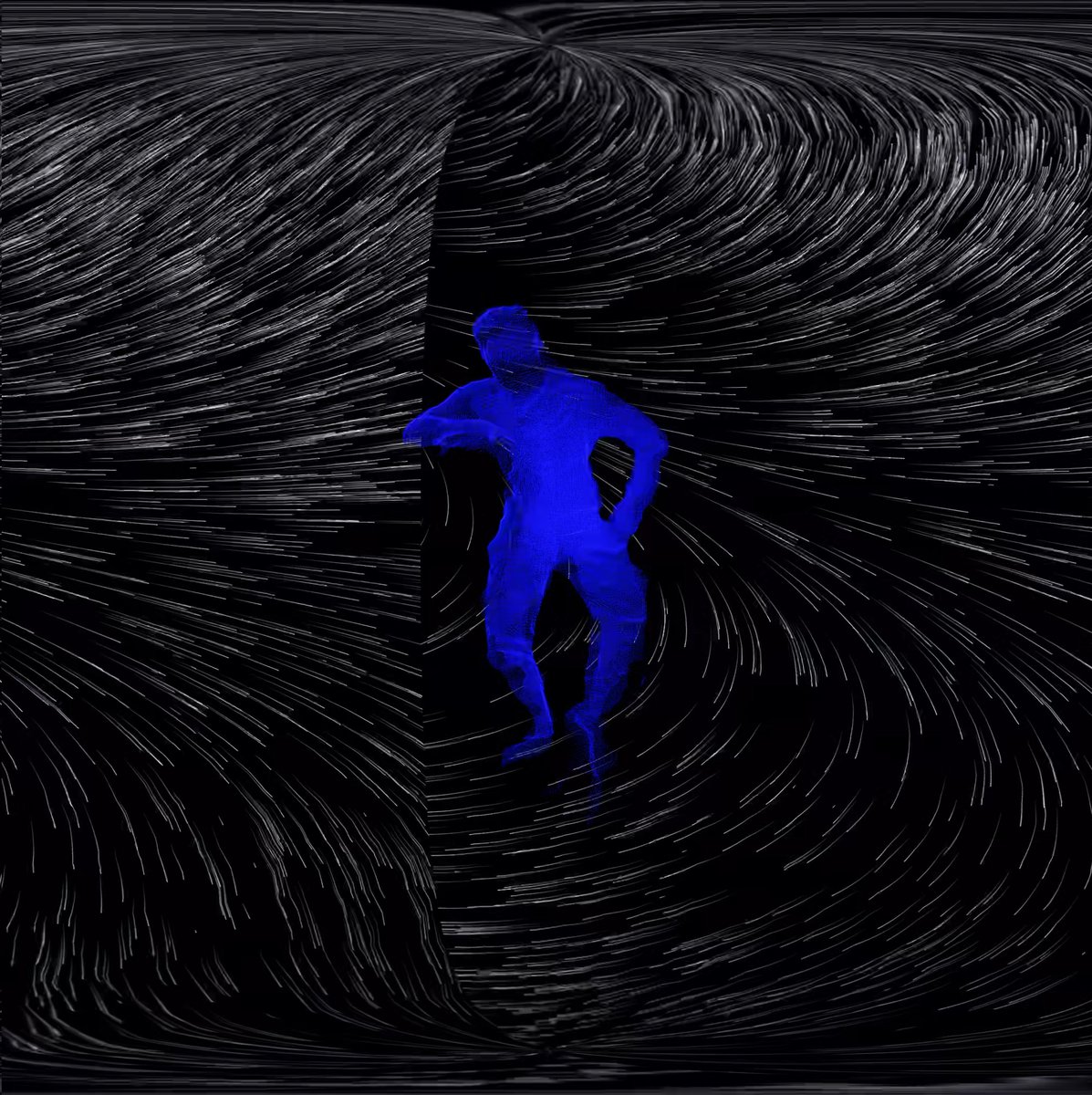 Las formas transitorias de las partículas digitales que formulan imágenes de sólidos disolviéndose, sublimación de líquidos y algoritmos de transferencia de temperatura y calor, se sincronizan y sintetizan con los movimientos de Hiroaki, produciendo un universo entero que baila como un organismo vivo. El residuo de calor que hierve a fuego lento después de la experiencia de una sobrecarga de información como esta permanecerá mucho tiempo en los cuerpos del público.