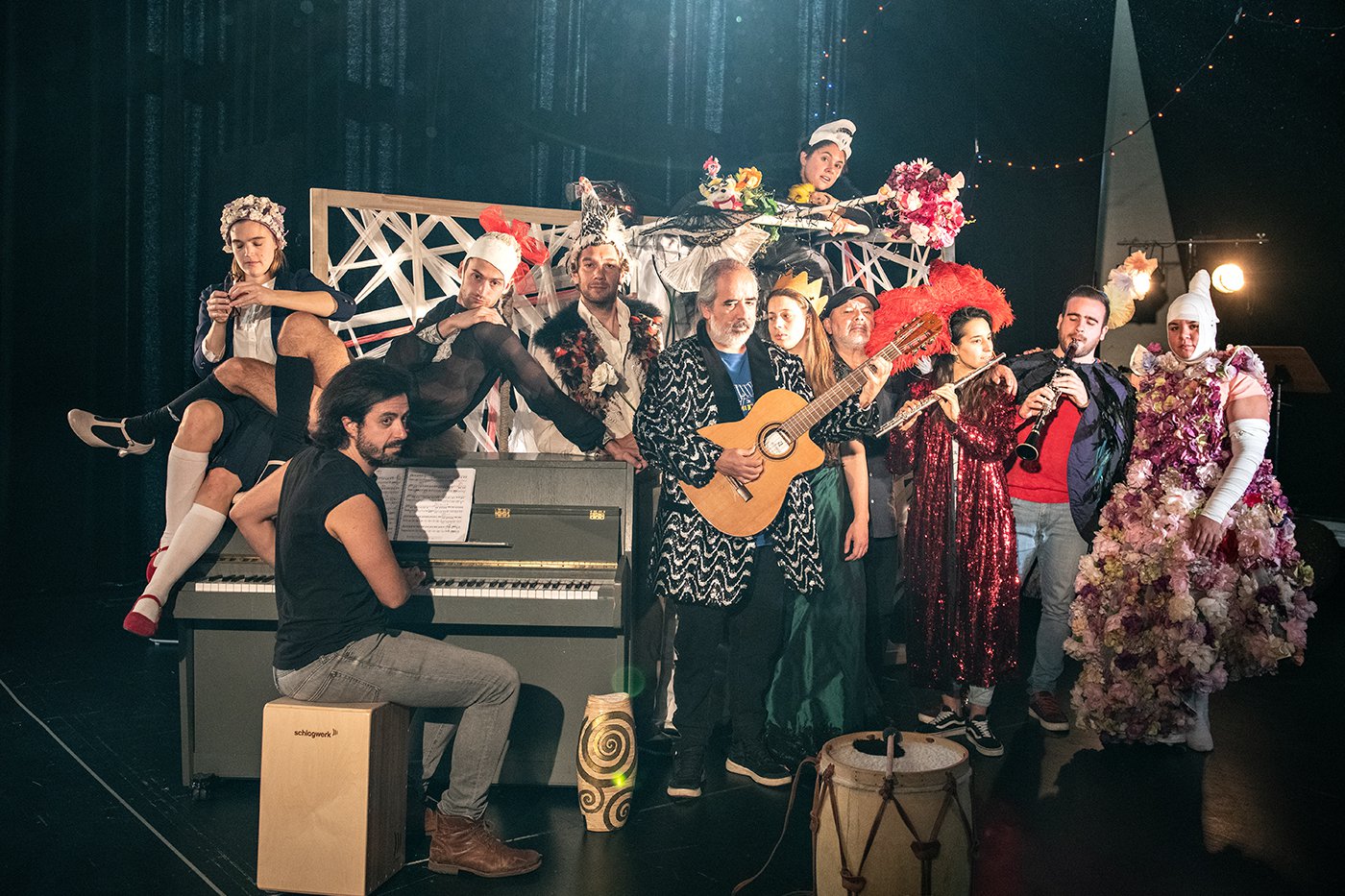 Antú Romero tiene una metodología particular para crear. Su obra emerge del ensayo, y lo interesante de esto es que obliga a que tanto el guion como las letras de las canciones vayan cambiando sus direcciones en la medida en que algo nace del escenario. Acá todos improvisan. El elenco multicultural que compone esta obra no ha quedado ajeno a lo que pasa en Chile, y eso ha permeado de manera importante el trabajo de ensayo y, por lo tanto, también de quienes escriben.