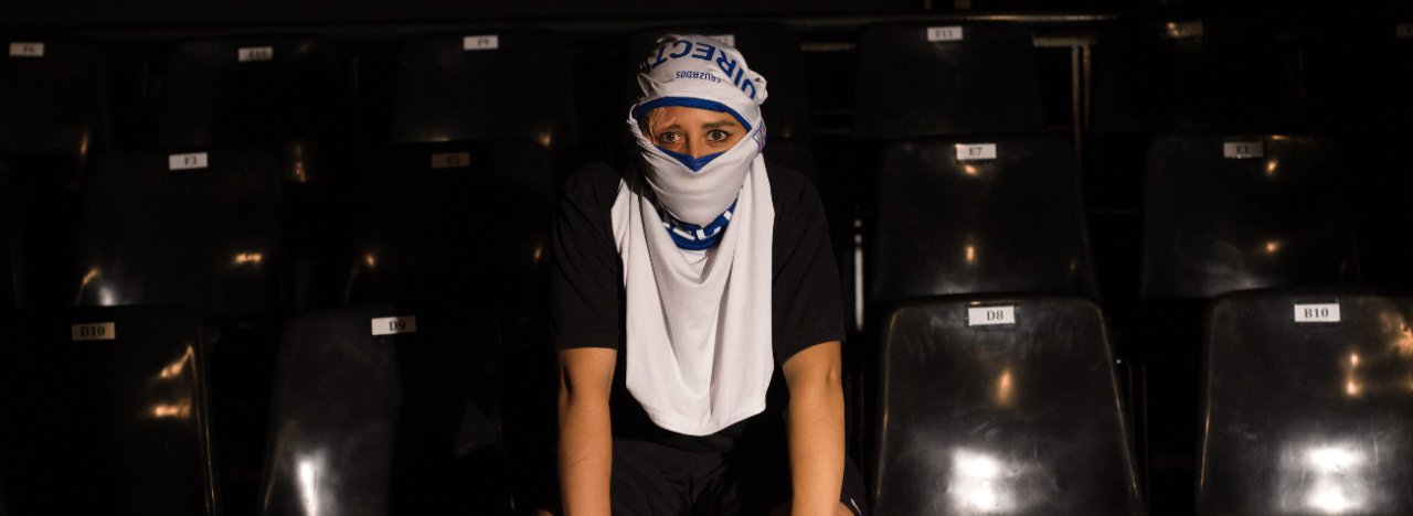 E: Hay dos símbolos que juegan, por un lado el fútbol y todo lo que representa en el mundo lésbico, y por otro lado el borramiento del rostro y además el simbolismo de cada capucha en la sociedad chilena, lo que significa Colo Colo y qué clase social representa versus Universidad Católica versus Universidad de Chile. A medida que borramos nuestra identidad o la identidad de los personajes, lo que los hace característicos, borramos eso, pero además ponemos este simbolismo que es una carga sobre este personaje.