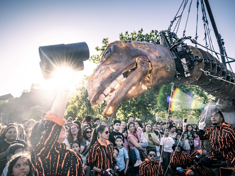 Es así como –una gigante marioneta de una titanosauria chilena, que es capaz de llevar a Vania Díaz en su lomo— viajará por las calles de distintas ciudades del país interactuando con los transeúntes y la arquitectura urbana al tiempo que enseñará acerca de la ciencia y de la paleontología al encontrarse con fósiles enormes de sus antepasados.
