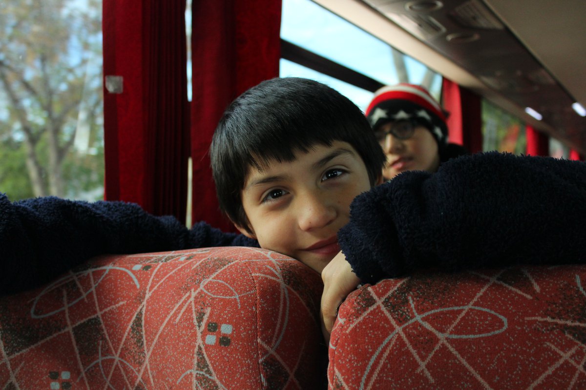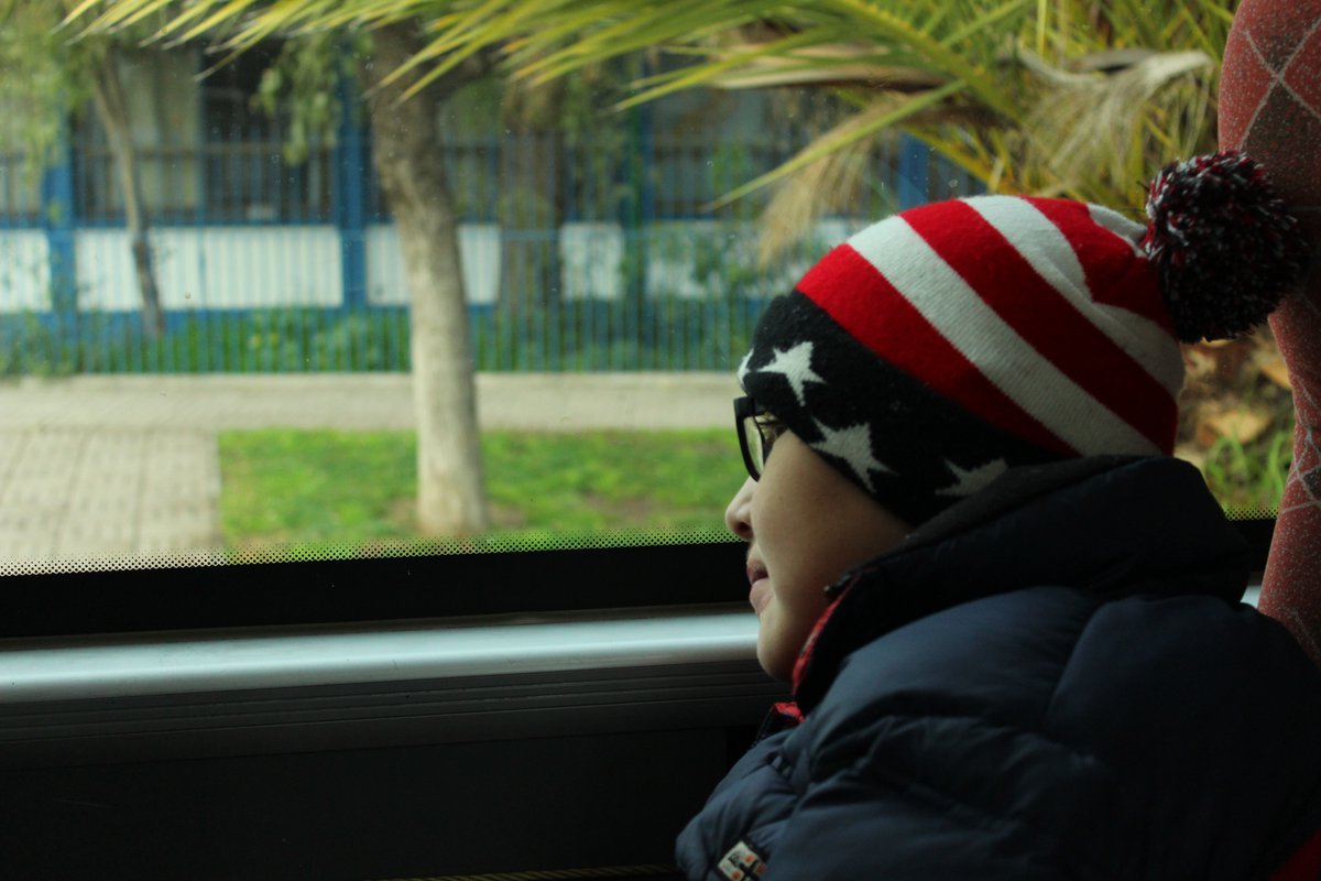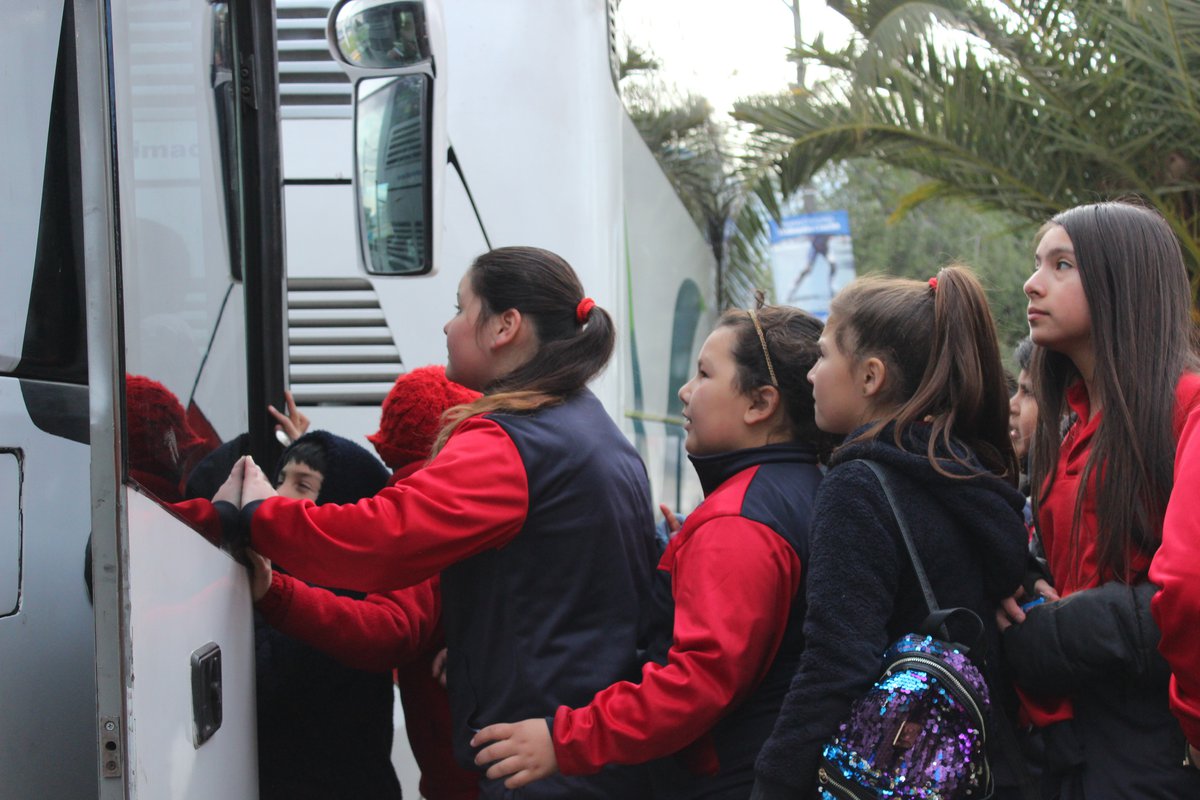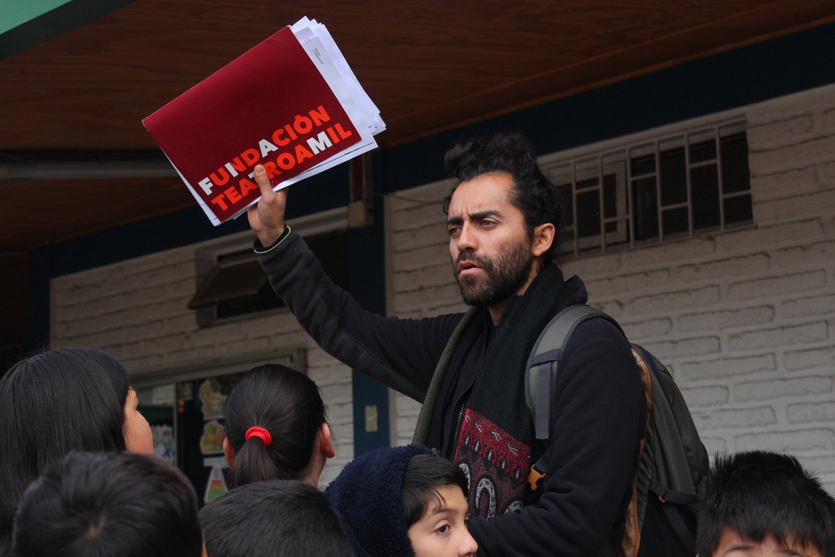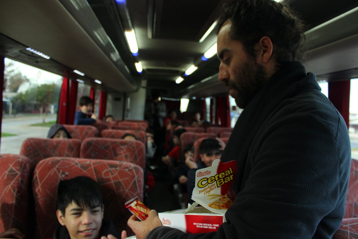 La típica fila escolar es larga y los niños impacientes juegan, pelean, comen su colación y hablan como cotorras. José Araya Veliz es el pedagogo teatral a cargo del gran grupo de alumnas y alumnos que suben con entusiasmo al bus, ese bus que se convierte en una experiencia por sí solo entre celulares con regguetón y trap, identificamos a Rosalía y Anuel AA entre los tracks favoritos del desordenado grupo de adelante.