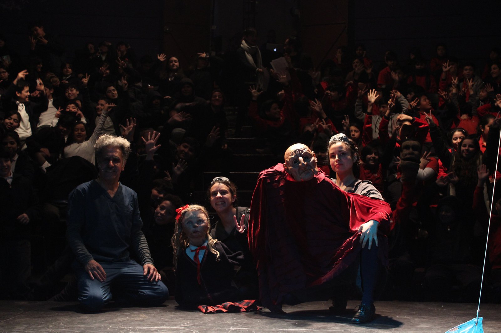 Luego de la presentación del rey Lear, la compañía se da un espacio para hablar con los niños y niñas sobre lo que acaban de ver, y de pronto, el escenario se transforma en una sala de clases que tiene de profesor estelar a Jaime Lorca. Asombrados el 8vo y 5to de la Escuela Sanitas, junto a los tres 5tos que se sumaron este año en la Escuela Poeta Óscar Castro, aprenden las técnicas utilizadas por el teatro de marionetas para sus montajes y de paso conocen a nuevos personajes de obras como La Venganza de Ricardo.