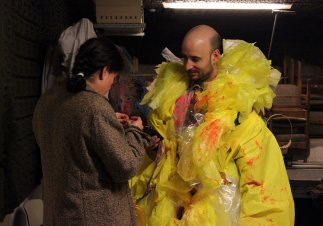 “He hablado harto con los actores, sobre algo que no tiene tanto que ver con la Violeta, sino que es algo ganado en la experiencia del montaje anterior –El corazón del gigante egoísta-, que es lo que algunos creadores hablan del ‘juego’, que lo que un actor tiene que hacer en el escenario es abrirse hacia una fantasía, una acción, como cuando los niños se creen el cuento de algo y juegan. Para mí, si hay una obra en la que tiene que haber juego en el actor, son las obras donde van a haber niños presenciando, porque hay que tratar de sostener la atención de ellos.