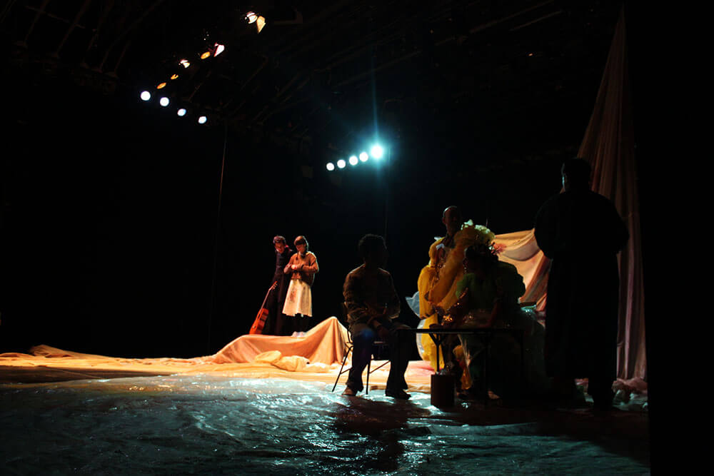 Cuando uno se mete en el universo de Violeta Parra, hay imágenes muy bellas, de palabras e ideas maravillosas; pero hay una constante, un espesor en sus cuadros, en sus arpilleras, en las notas y letras de sus canciones; donde la belleza está cruzada por un sentir y un dolor presente, una tragedia que rondaba su vida. A nosotros nos pareció bonito hacer una obra de tono dramático, porque lo que estamos haciendo nosotros también tiene humor y juegos. El argumento dramático es fundamental y nos hizo pensar mucho en quién estábamos homenajeando”.