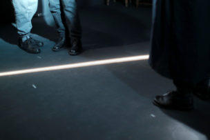 La directora está muy preocupada de lo que sentimos las personas que vemos, le importa provocar esa angustia y al mismo tiempo suavizarla con la sensación de carnaval, la música y el tratamiento sonoro. Hay pruebas de iluminación mientras ensayan y a Tomás le cuesta un poco más saber dónde tiene que pararse. El tratamiento de la iluminación es muy importante: abre y cierra espacios, crea atmósferas y desvaneces escenas.