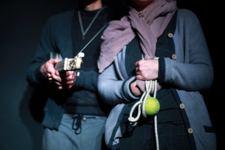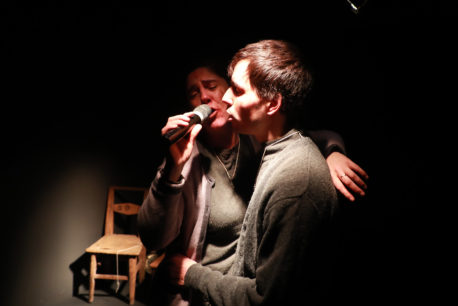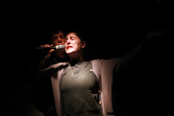 Volvemos al escenario y parte el ensayo. Todo en la escena es angustiante: sus rostros, sus textos, los objetos que utilizan, la situación habla por sí sola. La música toma un gran protagonismo, Tomás compone en vivo las pistas y se forman capas de voces sobre voces, que crean una atmósfera en cada “interludio” musical. Esto funciona como un respiro a la crudeza de lo que relatan las historias de los niños y niñas, pero a la vez es un grito descarnado de libertar, de distensión, esa distensión que emerge del mismo sufrimiento, transformada en carnaval. Trinidad dice al respecto que la música “es un personaje más. Musicalmente iremos sintiendo que las piezas forman parte de un todo, que hablan de la realidad del ser humano en el mundo, que no responden a un lugar específico”.