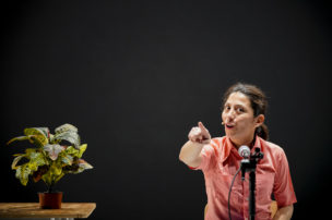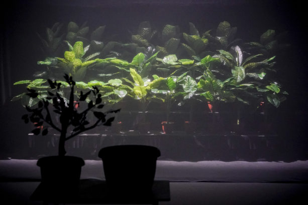 Estado Vegetal es un monólogo polifónico, ramificado, exuberante, reiterativo, divisible y sésil. Su protagonista es una mujer, que no es un individuo; es una multitud, un enjambre. Esta no es una obra animal, es una obra vegetal.