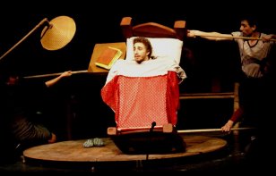 En versión de TeatroPAN es una comedia dentro de otra. Creando una fiesta popular, invita a ver cómo una compañía de Teatro, apasionadamente italiana, pone en escena el clásico de Carlo Goldoni, mostrando lúdicamente lo que ocurre tras bambalinas. En un tablado que recrea un escenario de plaza, se entremezcla la comedia de enredos que habla del amor, la astucia y la alegría de vivir, con las inesperadas situaciones que enfrentan los actores para desarrollar el montaje. Es una vitrina de las relaciones humanas en la que el Teatro es el homenajeado y en la que se revive la Comedia del Arte, su historia y su potencia.