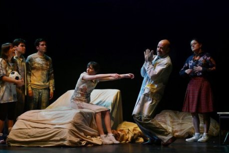Una historia de amor, dos hermanas muy diferentes y un viejo circo. Tras su estreno en Noruega llega la adaptación para público familiar de la obra más exitosa de la compañía La Mona Ilustre. En Los peces no vuelan para niños y niñas las historias se cruzan. Por una parte, están dos hermanas opuestas, una soñadora y otra práctica. Una quiere construir una máquina que vuela, la otra trabaja en una productora. Ahí llega un joven que sueña con ser actor y que se enamorará de una de las hermanas. Ese joven dejó atrás el circo donde vivía con su padre, que sigue luchando en mantener la tradición familiar. Y todos ellos son personajes de la historia que escribe Lucrecia.