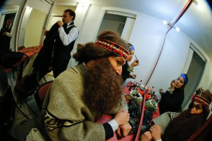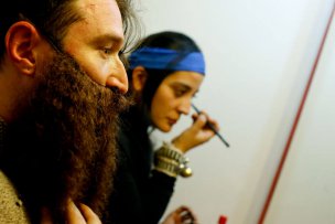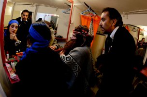 Los actores bromean, ensayan expresiones frente al espejo y se acomodan el vestuario. “Nos gusta conversar con la Simona”, cuenta Cristián. Los tres actores están muy pendientes de que la pequeña actriz se sienta cómoda y en confianza. La idea es “generar una camaradería de camarín”, dice Jorge, mientras se acomoda la barba con que interpreta al francés Orélie Antoine de Tounens, quien en la ficción llega a territorio mapuche para fundar el Reino de la Araucanía y la Patagonia.
