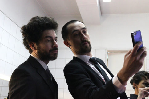 Llegó la hora del clásico “mierda, mierda” entonces llaman a todas las personas que están trabajando para la obra, entre ellos Daniel Recabarren, asistente de dirección. Las personas encargados de los aspectos técnicos y el elenco se toman de las manos. Moisés dirige las palabras, agradecen a todos por su trabajo, recuerdan al director brasileño Felipe Hirsch, tiran un par de bromas más y lanzan el grito MIERDA MIERDA. Es el momento de los abrazos y retirarse del escenario. La función está por comenzar.