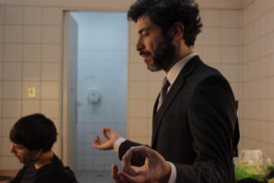 La hora se acerca y deciden en conjunto ensayar algunas partes de la obra. Empieza a hablar Manuela Martelli y si hace un segundo estaban muertos de la risa, ahora están completamente dentro del personaje. Durante la obra cada uno es una alternativa A) B) C) D) E), entonces los vemos recitando sus partes con una importante proyección de la voz sus textos. Entremedio Rafael Correa se pone en diferentes posiciones y junta sus dedos como haciendo yoga, dice entre bromas que come mucho cuando está nervioso, mientras agarra una tortilla, luego se acerca a Manuela y haciendo un juego extraño con sus manos terminan de repasar algunas líneas. Trinidad, Mateo y Moisés se miran por última vez al espejo y se dirigen al escenario.
