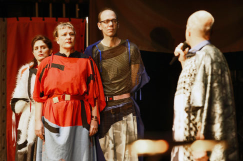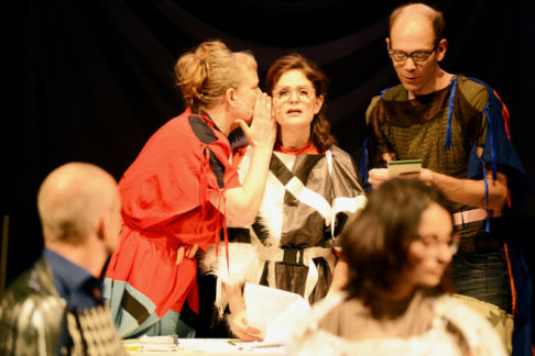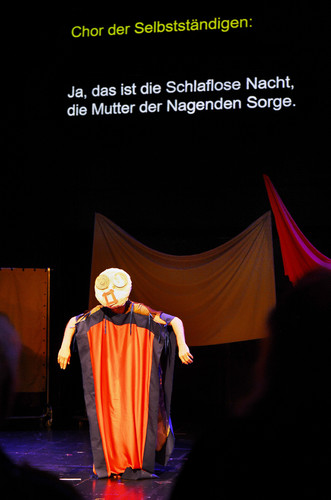 ¿Qué es eso de la propiedad, que separa a los que tienen de los que no tienen? ¿Quiénes ganan y quienes pierden con los procesos de privatización y gentrificación de los barrios? Es desde estas interrogantes que surge Oratorium montaje del reconocido colectivo SheShePop. La obra se caracteriza por adaptarse a la ciudad donde se realice. En ella interactúan el “coro de los delegados locales”, según la respectiva ciudad, y el “coro del público” que según la escena se divide, a su vez, en el coro de los que se definen tendencialmente por su condición social, por ejemplo, los que estudiaron una carrera en el campo de las humanidades, las que son madres, las que nacieron en la ex -RDA, los que habiendo vivido en la ex -RDA se declararon lutheranos o católicos, los que son propietarios etc. Los delegados locales por su parte, declaman citas, que leen desde una pantalla, y que provienen de pensadores y artistas (Brecht, Marx), o de políticos alemanes (Ulbricht, Merkel), en relación con la vivienda como una necesidad o un bien, y relatan su propia situación de vivienda en Leipzig, que hoy, producto de la especulación inmobiliaria comienza a dejar de ser el paraíso que fue. Entre estos delegados hay una escritora, una periodista, una heredera que a su vez trabaja en un voluntariado, un extranjero entre otros. Cada cual carga su propia historia sobre esta situación habitacional, historias disímiles que se encuentran sobre la escena.