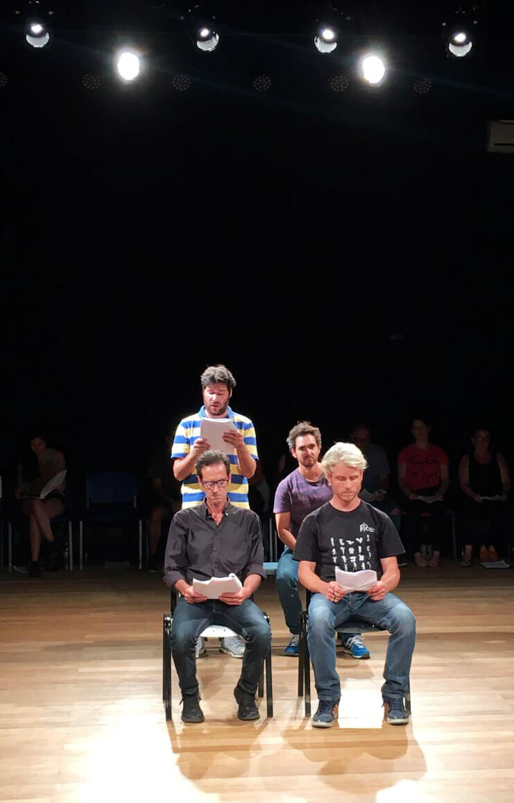 Posterior a las revisiones de los trabajos de los autores, se realizó una lectura pública de sus trabajos, al que asistieron un centenar de personas. Para ello, el INAE Uruguay realizó una convocatoria de actores de 20 a 60 años, proceso que terminó por seleccionar una docena de artistas que mostrarían un primer adelanto de los textos construidos en los talleres.