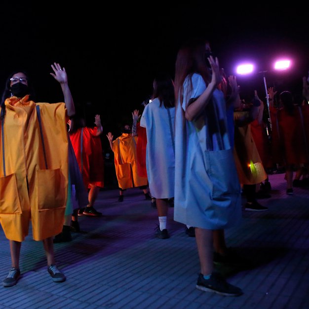Puesta en escena colaborativa en el espacio público creada en residencia en Valparaíso, a través de estrategias escénicas interdisciplinarias. Contempla la participación de alrededor de 80 mujeres y disidencias de distintas edades y formaciones en un proceso de laboratorio creativo. La obra busca traducir algunas ideas de Judith Butler, Paul B. Preciado y María Lugones, a través de un dispositivo escénico sustentado en los cuerpos y experiencias de las y les participantes. En el antagonismo entre represión y placer, muerte y fiesta, denuncia y resistencia, la performance busca abordar la reivindicación del derecho a una vida libre de violencia en un contexto de colonización y extractivismo activo.